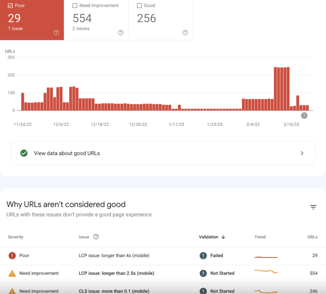 To maintain monitor of those metrics, use Google Search Console’s (GSC) experiences. GSC collects information from actual customers interacting together with your web site’s pages and detects these which don’t have an excellent web page expertise. With the assistance of informative dashboards, you’ll acquire a transparent understanding of the precise issues, which pages have them, and their criticality.