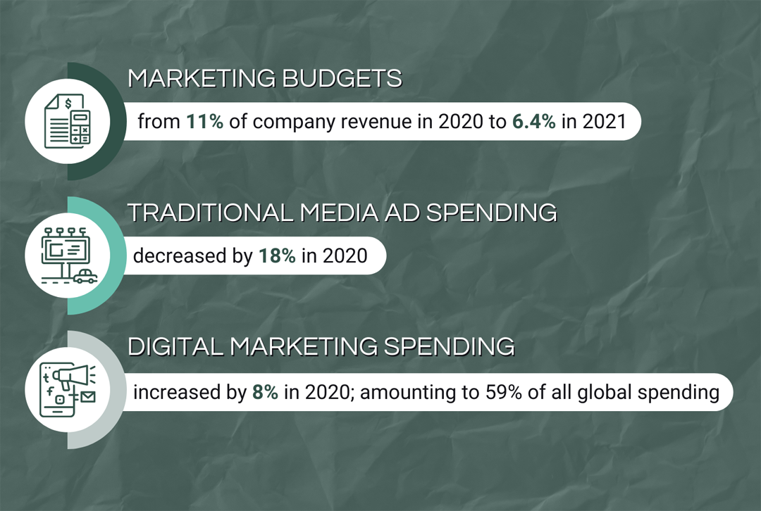 As anticipated, world advert spending decreased by 4.2% in 2020, to a complete of $569 billion, in accordance with Forbes. Nonetheless, the descending pattern utilized solely to the normal media, its share of $233 billion representing 18% lower than 2019, whereas digital advertising went up by 8%, reaching $336 billion. Thus, in 2020, digital adverts amounted to 59% of all world advert spending.