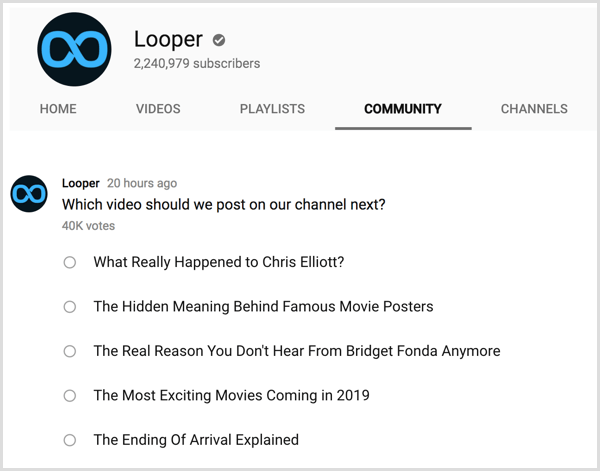 Right here’s an excellent instance of how Looper used the “Neighborhood” tab on their YouTube channel.