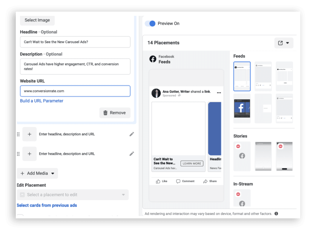 Keep in mind so as to add a novel hyperlink to the product web page or touchdown web page you wish to ship folks to once they click on in your carousel advert. You possibly can embody as much as ten playing cards in your marketing campaign, and resolve which order to put them in manually. Alternatively, Fb has a dynamic placement possibility obtainable.