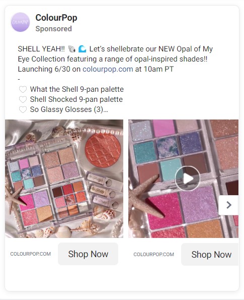Extremely visible manufacturers, just like the ColourPop cosmetics firm, profit most from artistic advertisements able to showcasing their merchandise in the absolute best gentle. ColourPop commonly makes use of a mix of video, picture, and carousel advertisements of their Fb campaigns.
