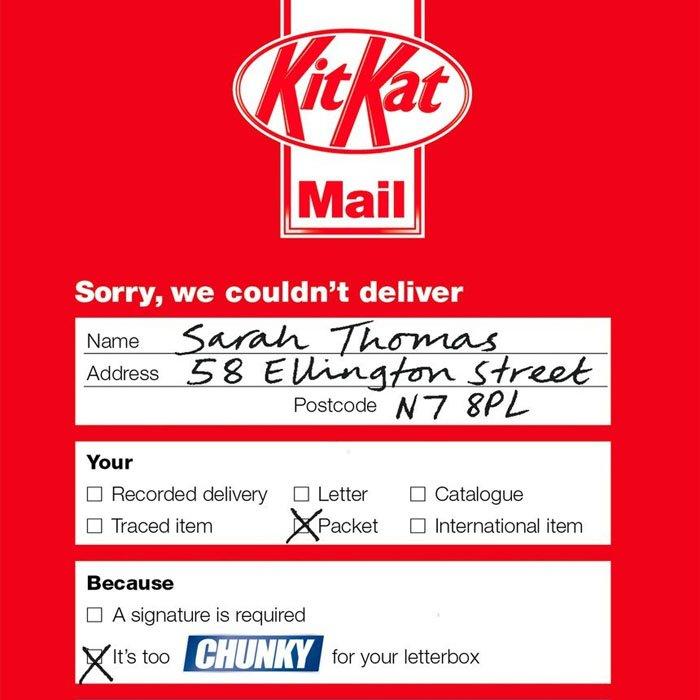 You’ll be able to even use unsolicited mail advertising and marketing to showcase your organization’s distinctive character. That’s what Nestle did when it despatched out unsolicited mail flyers permitting prospects to request a free “KitKat Chunky” despatched straight to their doorstep. The playful design of the advert was meant to look identical to a “You Missed Your Supply” card from the native mail.