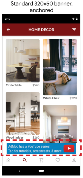 There are two sorts of adaptive banners: anchored and inline. Anchored adaptive banners are all the time onscreen, locked on the prime or backside of the display. Anchored adaptive banners often have small most heights to keep away from taking on an excessive amount of area on the display. Inline adaptive banners are positioned inside scrollable content material. Inline adaptive banners don’t have fastened measurement limits.