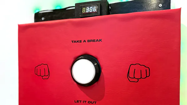 Utilizing One Minute Punch Break is intuitive and easy. Whenever you’re feeling harassed, simply stroll as much as the wall-mounted system. Push the massive arcade button to start the one minute countdown after which begin punching. Each punch that lands on the system’s broad floor will add to your rely. A string of LEDs looping across the system’s perimeter will mild up in sequence to supply a visible indication of the time remaining on the countdown. When your minute is up, you’ll be able to look to see what number of punches you unleashed.