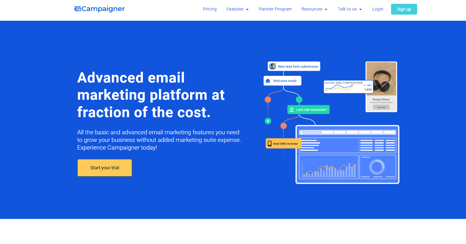 Campaigner is an electronic mail advertising platform designed for bigger corporations with superior necessities. It’s an awesome software for those who’re searching for one thing that mixes touchdown pages and kinds with a drag-and-drop builder, in addition to {powerful} instruments for segmentation and dynamic content material creation.