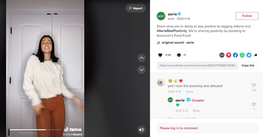 One of the profitable campaigns on TikTok is from the collaboration of Aerie, a sub-brand of American Eagle Outfitters, and the most-followed TikTok star, Charli D’amelio.